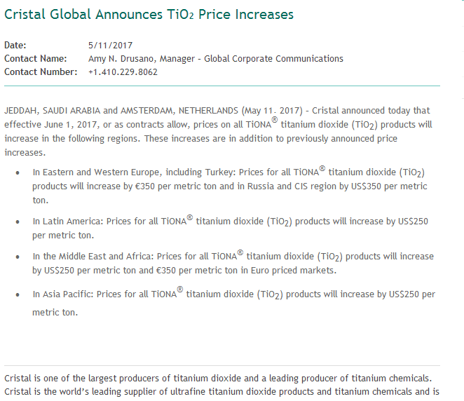 莫斯科(MRC) -根据MRC价格报告,乌克兰市场参与者预计 成全免费阅读,在格里夫纳贬值和清空库存的背景下,二氧化钛(TiO2)的价格将在4月份上涨。