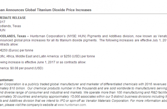 DuPont Titanium Technologies announces a price increase for all DuPont™ Ti-Pure® titanium dioxide grades sold in the Europe, Middle East and Africa region.